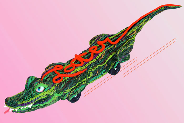 "Later Alligator", Boy Scout Pinewood Derby car kit, mixed media