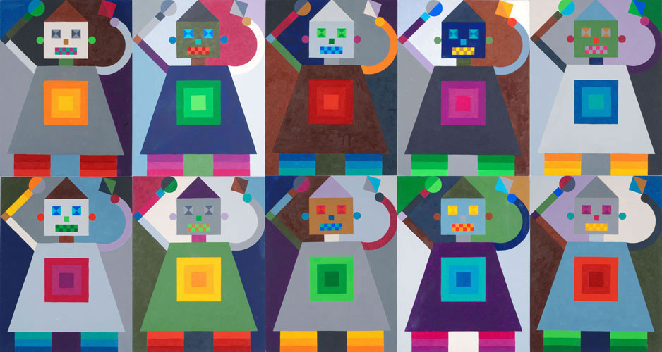 "Rowdy Robot Riot", oil on canvas, ten 18" by 24" paintings, 2006